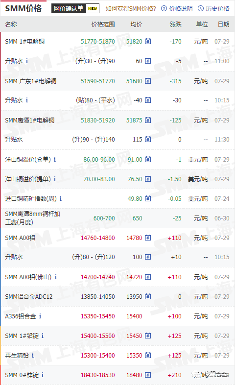 俊霖合金解讀:7月29日有色金屬行情