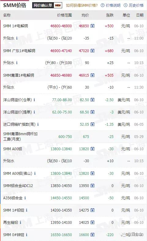 俊霖合金解讀:6月10日有色金屬行情